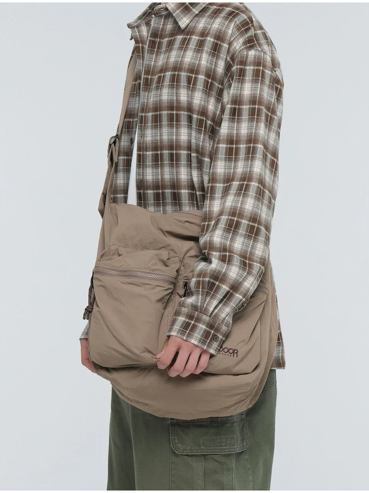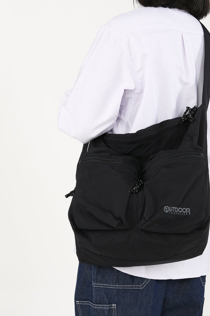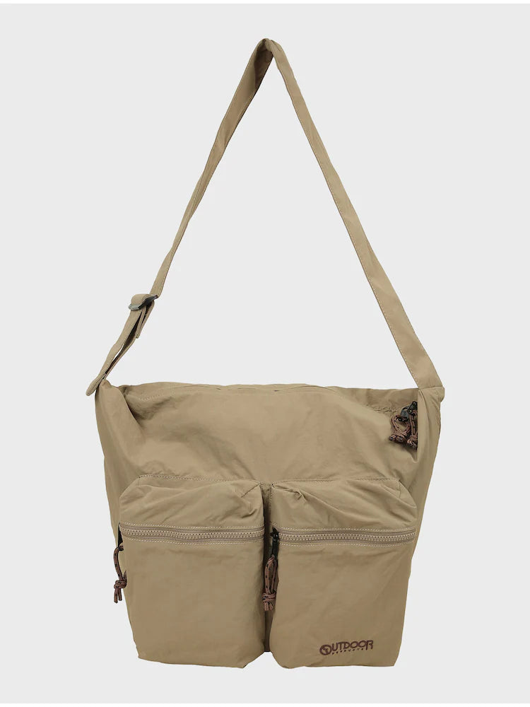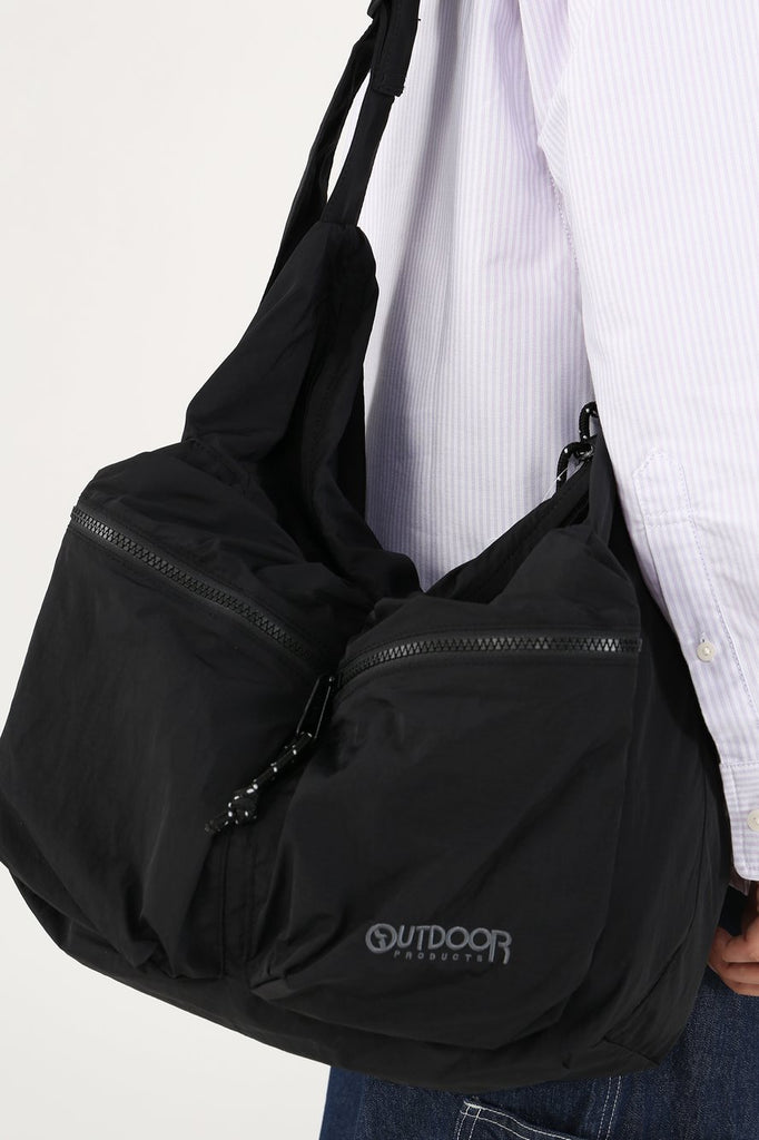 - This is a lightweight shoulder bag made of washer nylon. The main top has a large plastic nylon zipper opening for easy use.