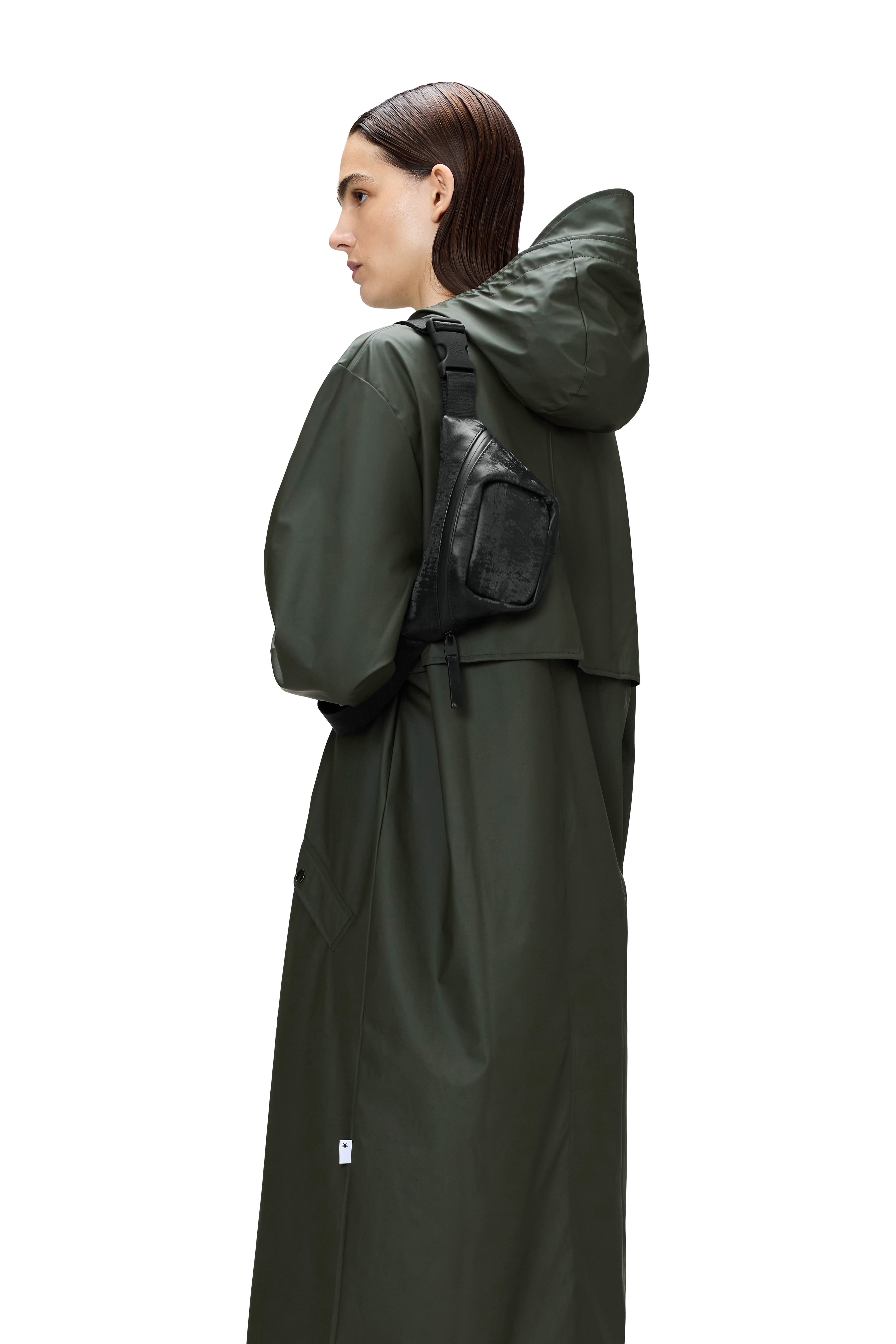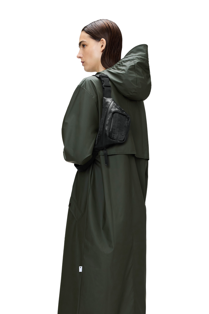 Bum Bag Micro is cut from Rains’ signature waterproof PU fabric, engineered for carrying strength, durability and a smooth feel.