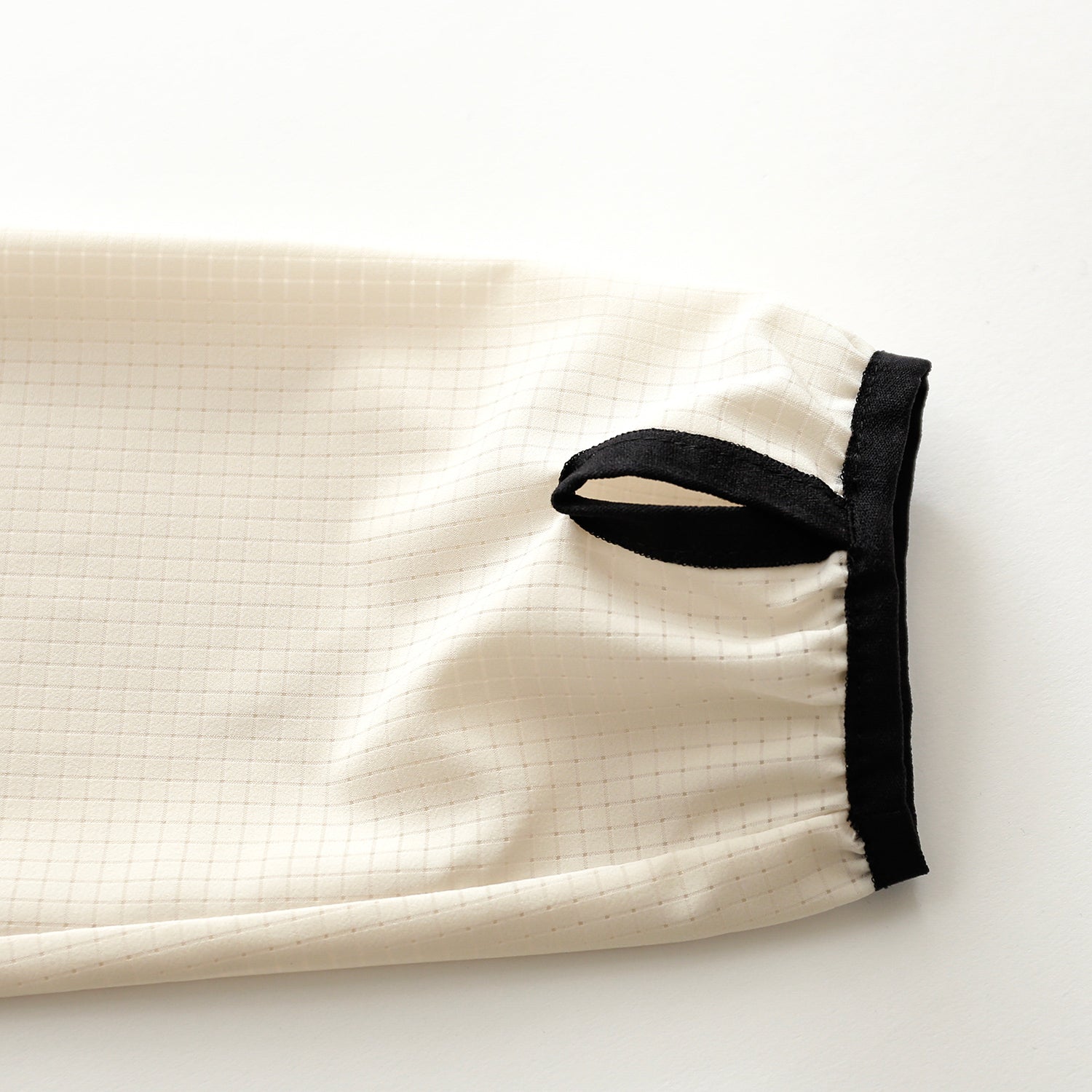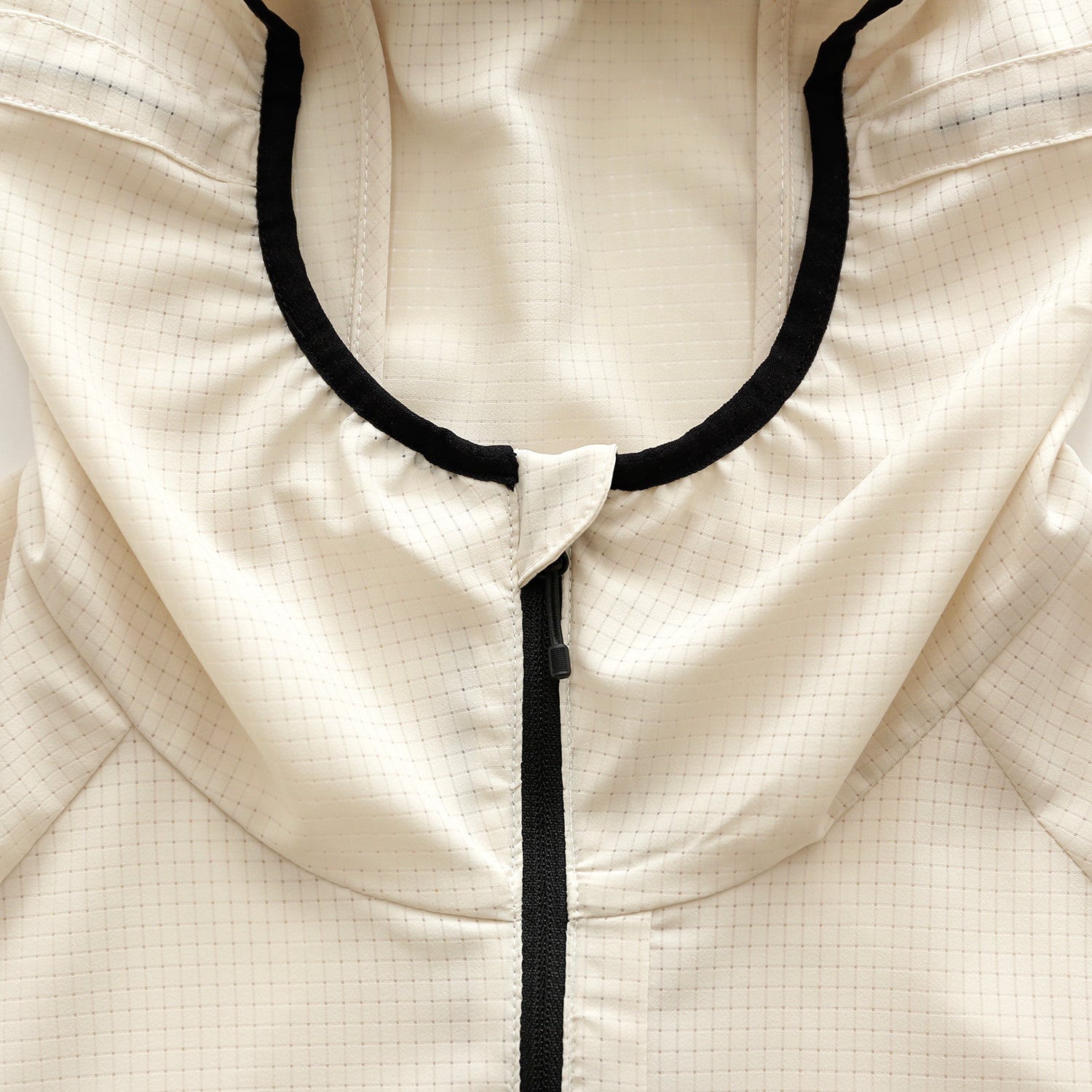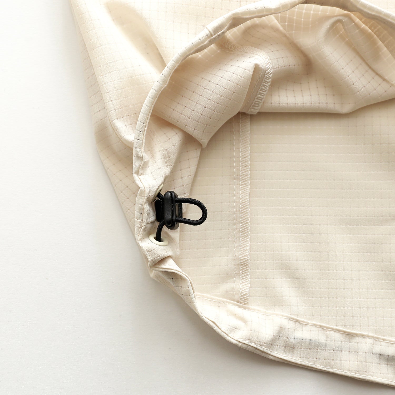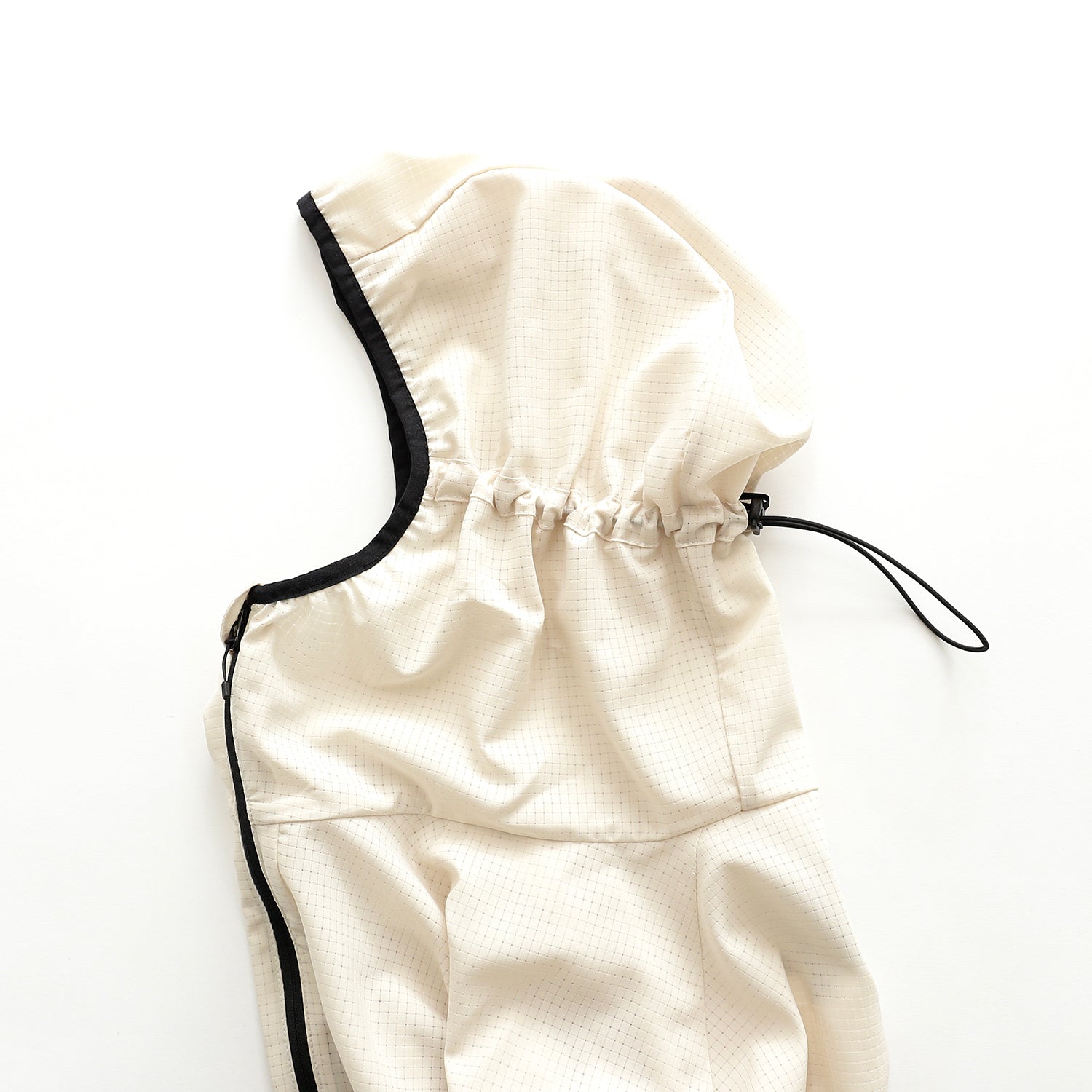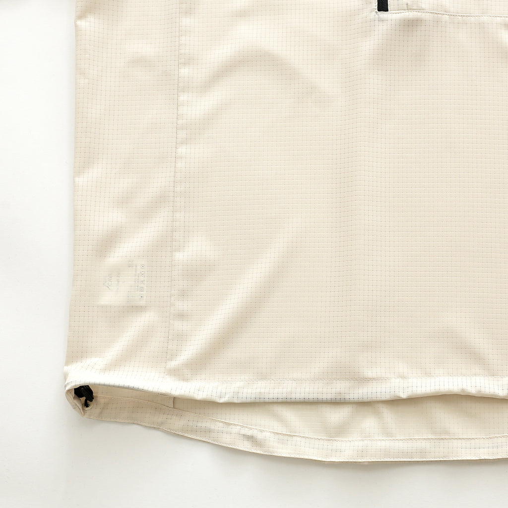 sleeves . Reflective logo on the front. Tightening straps on the hem allow for a customizable fit . Side zippers for easy wear and ventilation . Daily life waterproof (water-repellent DWR coating - water-repellent power decreases with use) 1. Fabric: Polyester 85% Polyurethane 15% (60D) , DWR (water-repellent) applied 2. Zipper: YKK zipper 3. Accessories: Woojin Plastic 4. Weight: 235 g (S size) * Recommended season - mid-season and summer Made in Korea