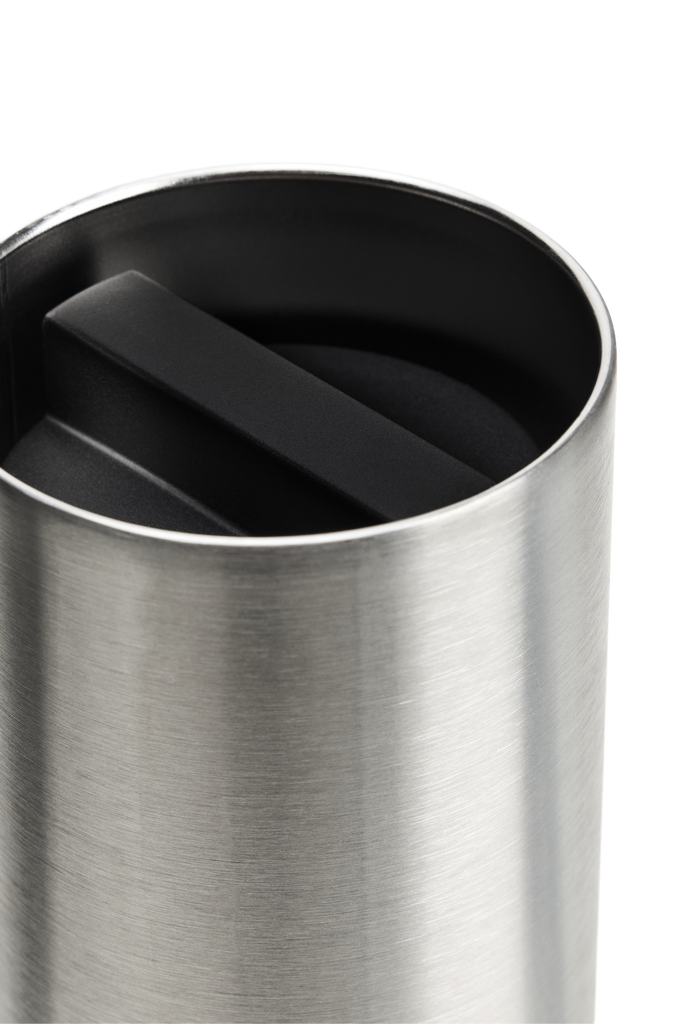 This singular column is made from durable and odorless double-walled stainless steel and vacuum insulated, keeping your drinks cool for 12h or hot for 6-8h. Topped off with a twist cap design in food safe polycarbonate, this bottle allows restricted flow for drinking and full closure for transit.