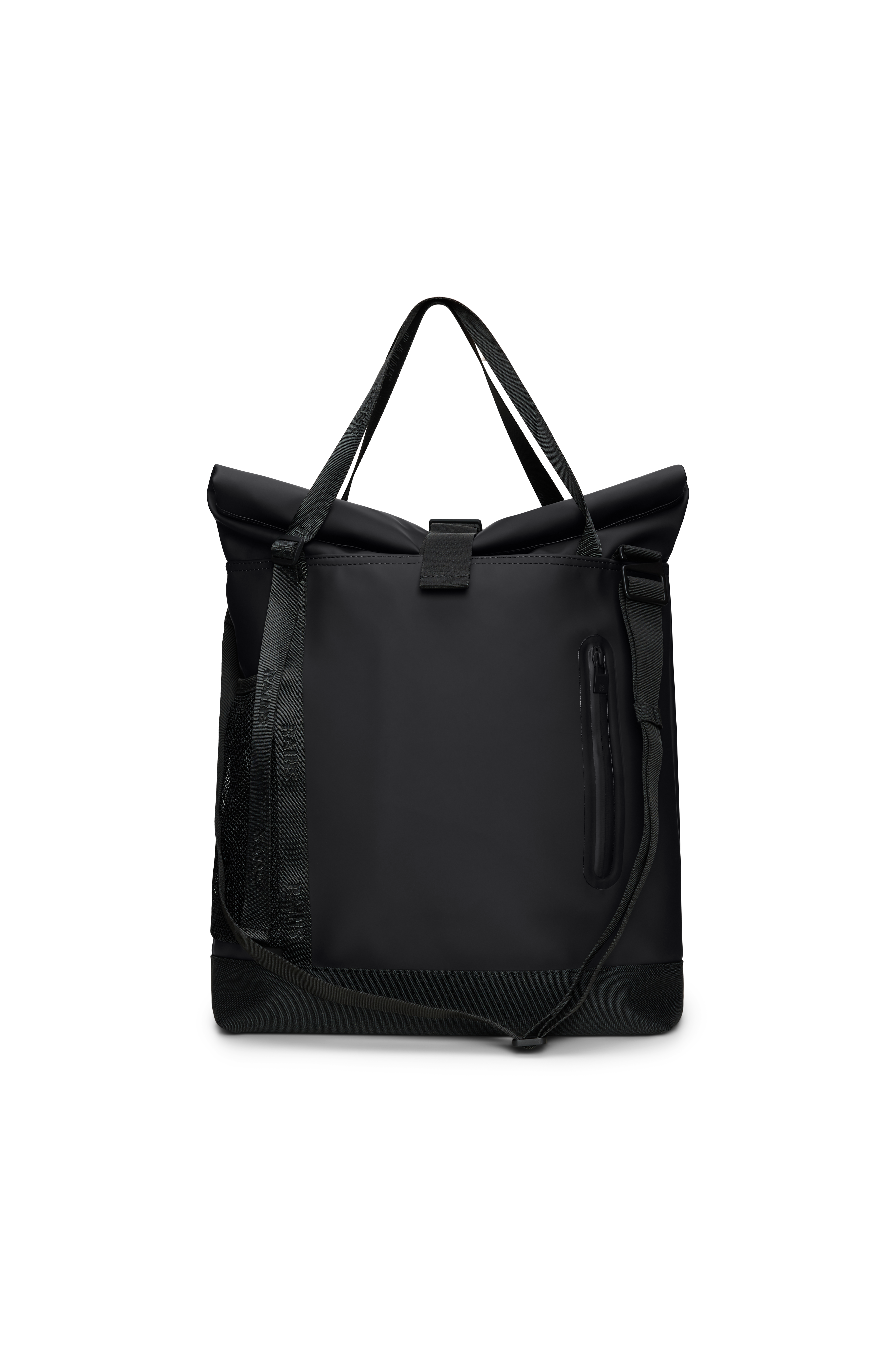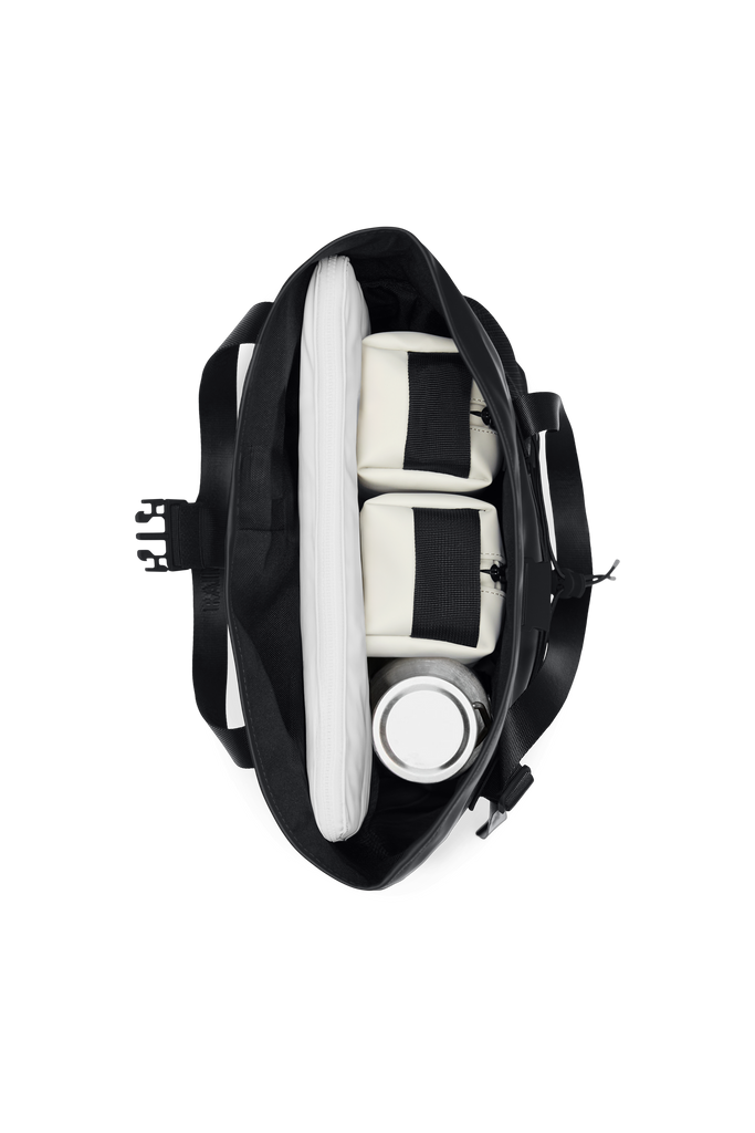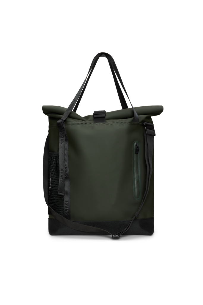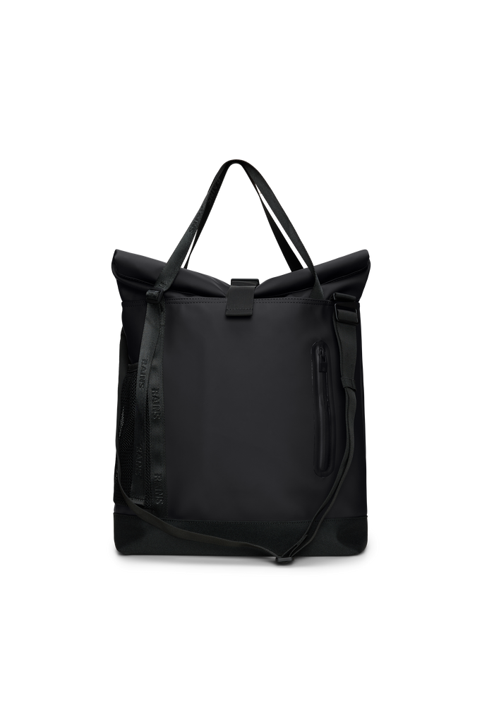 Trail Rolltop Tote Bag is cut from Rains' signature PU fabric, engineered for carrying strength, durability and a smooth feel.