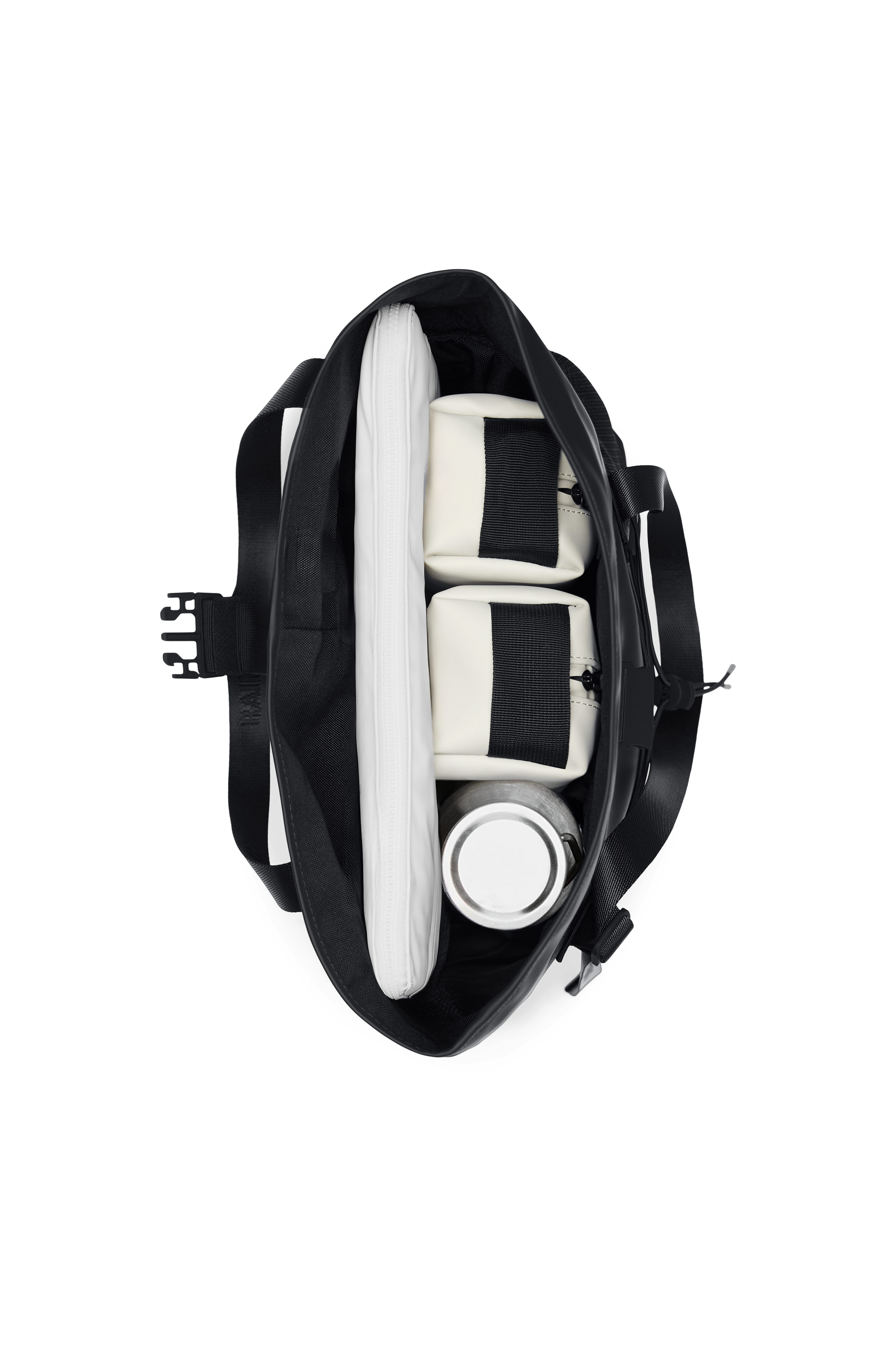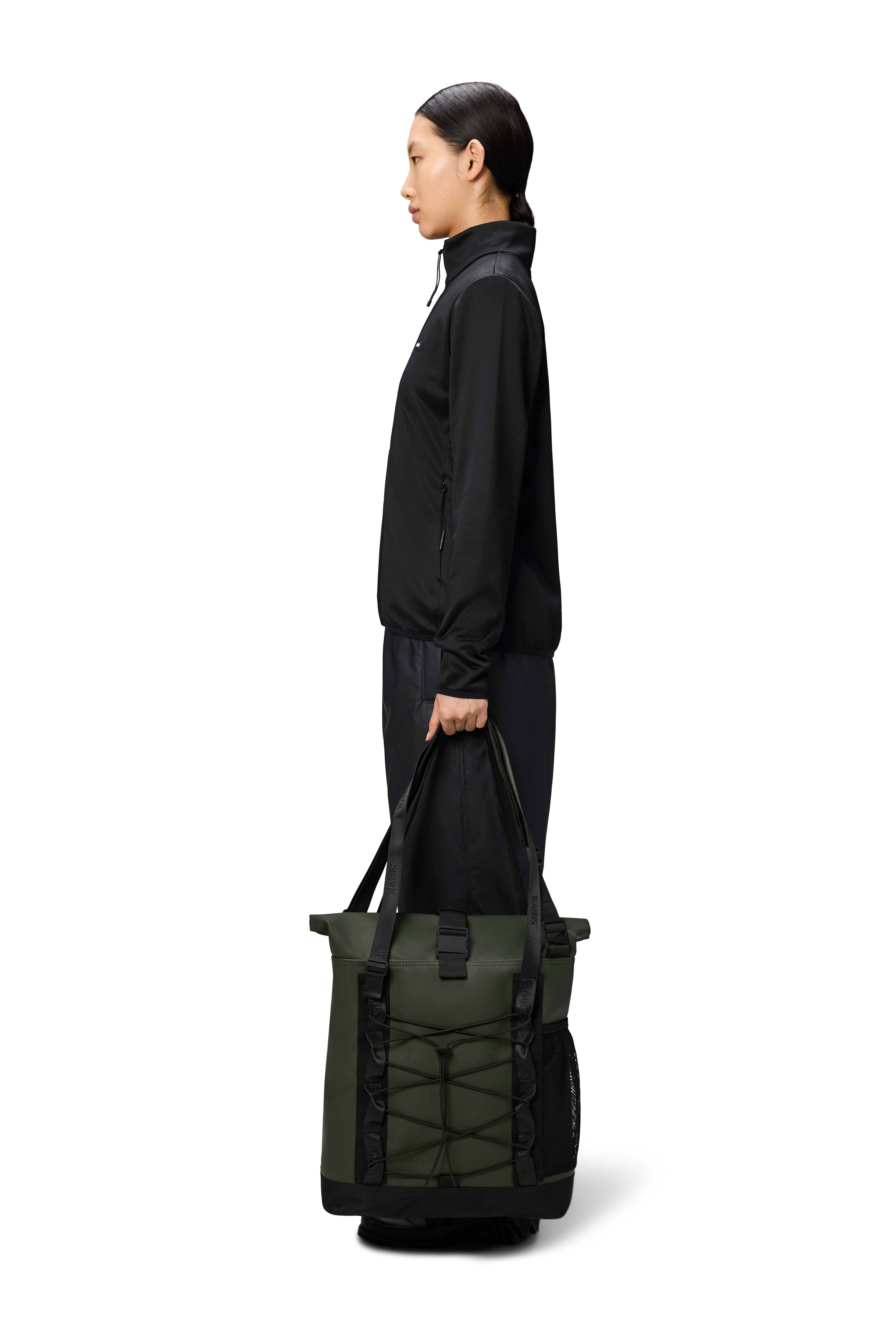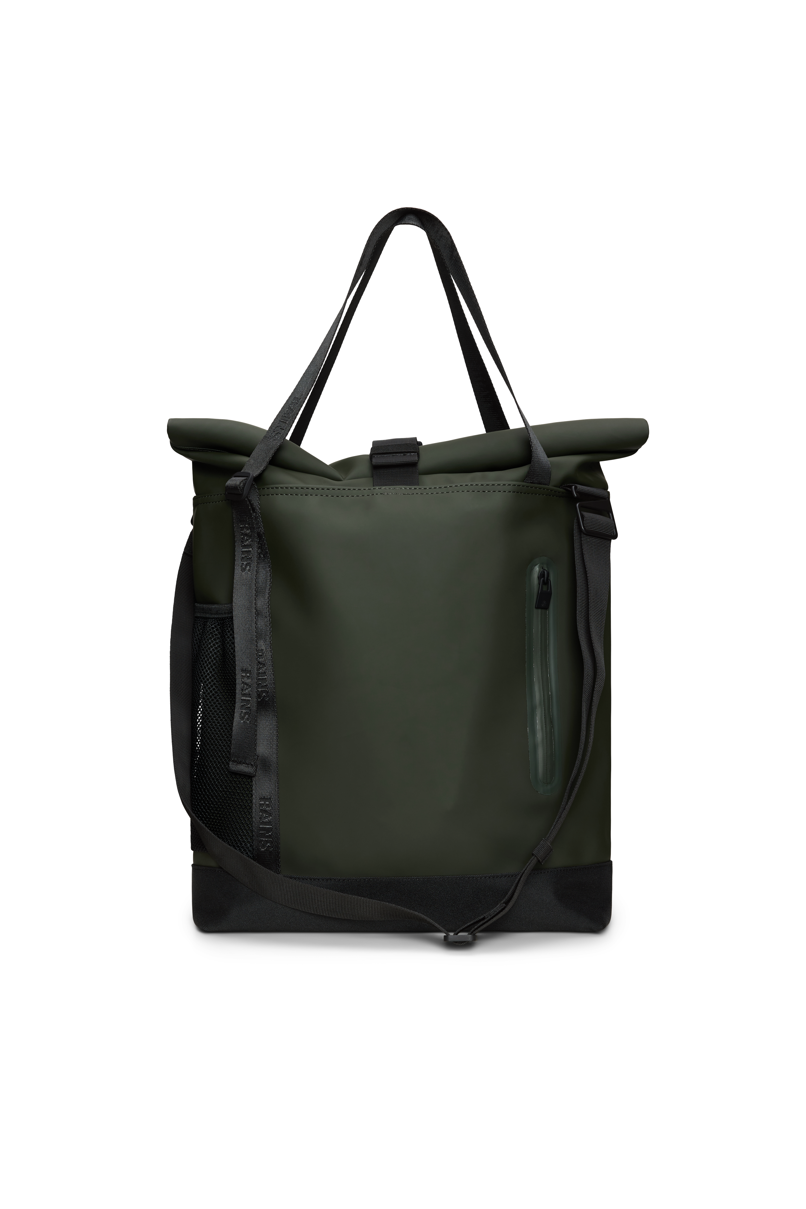 Trail Rolltop Tote Bag is cut from Rains' signature PU fabric, engineered for carrying strength, durability and a smooth feel.