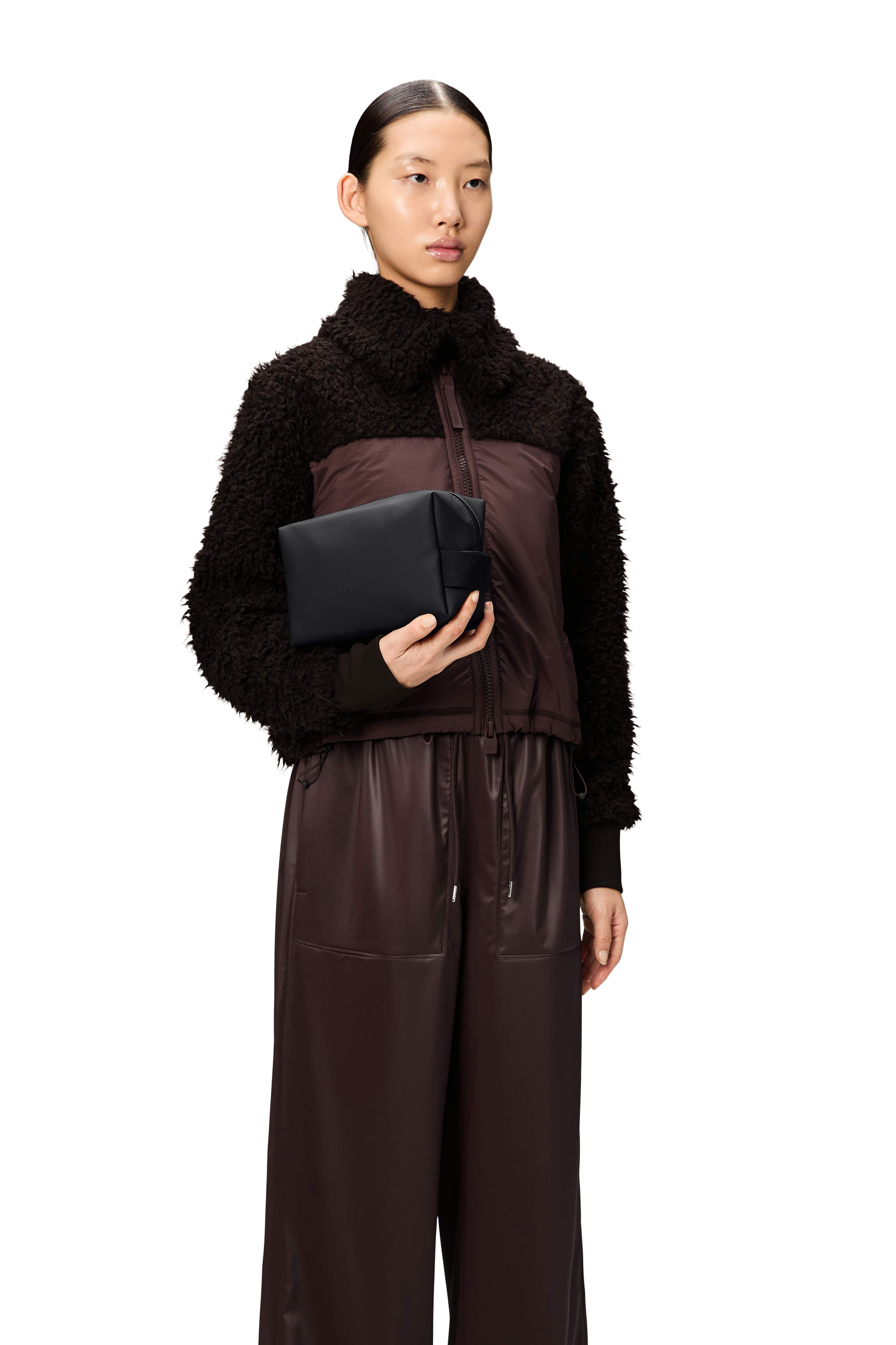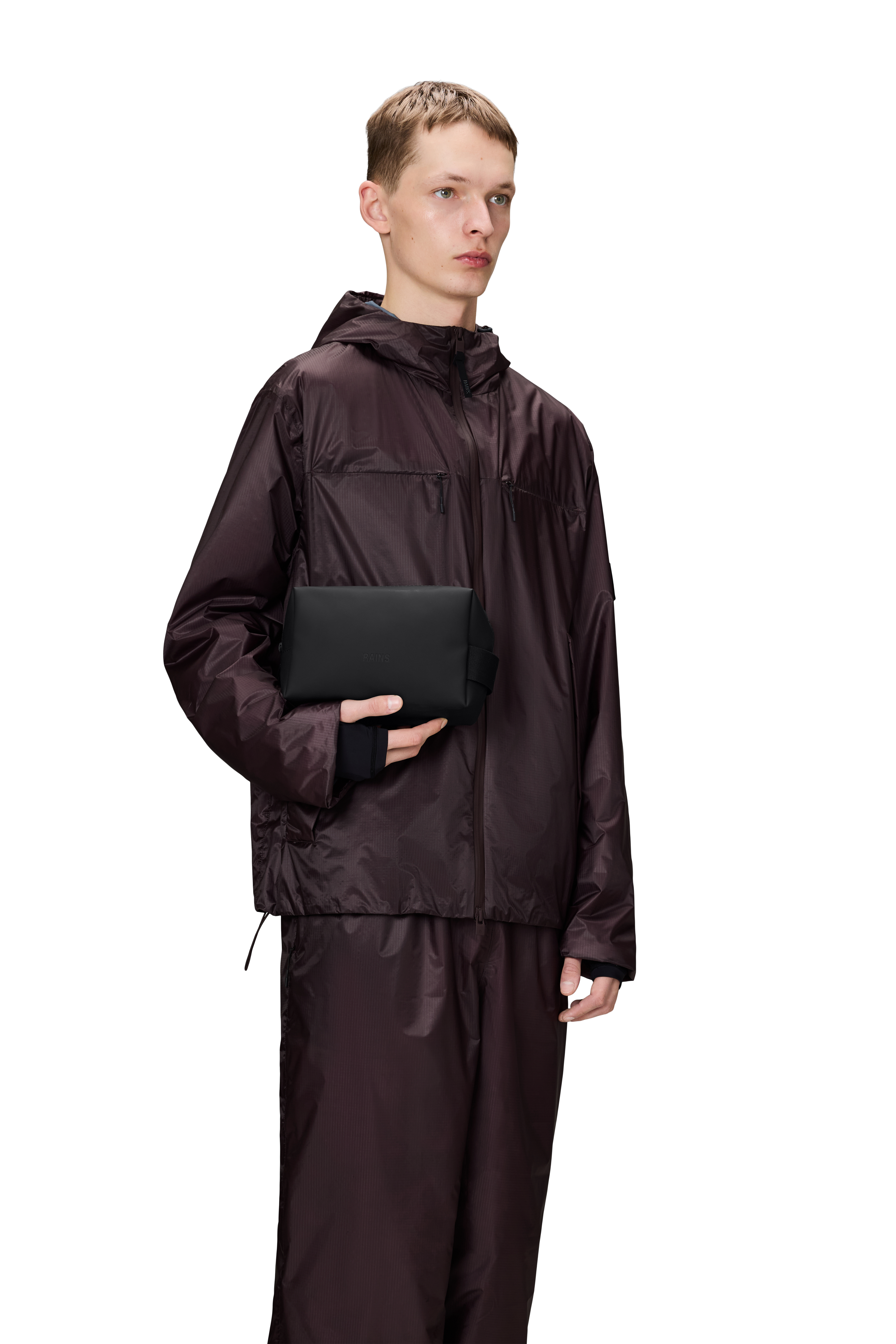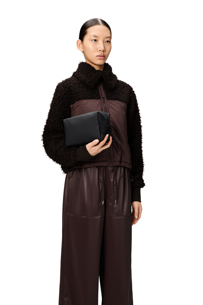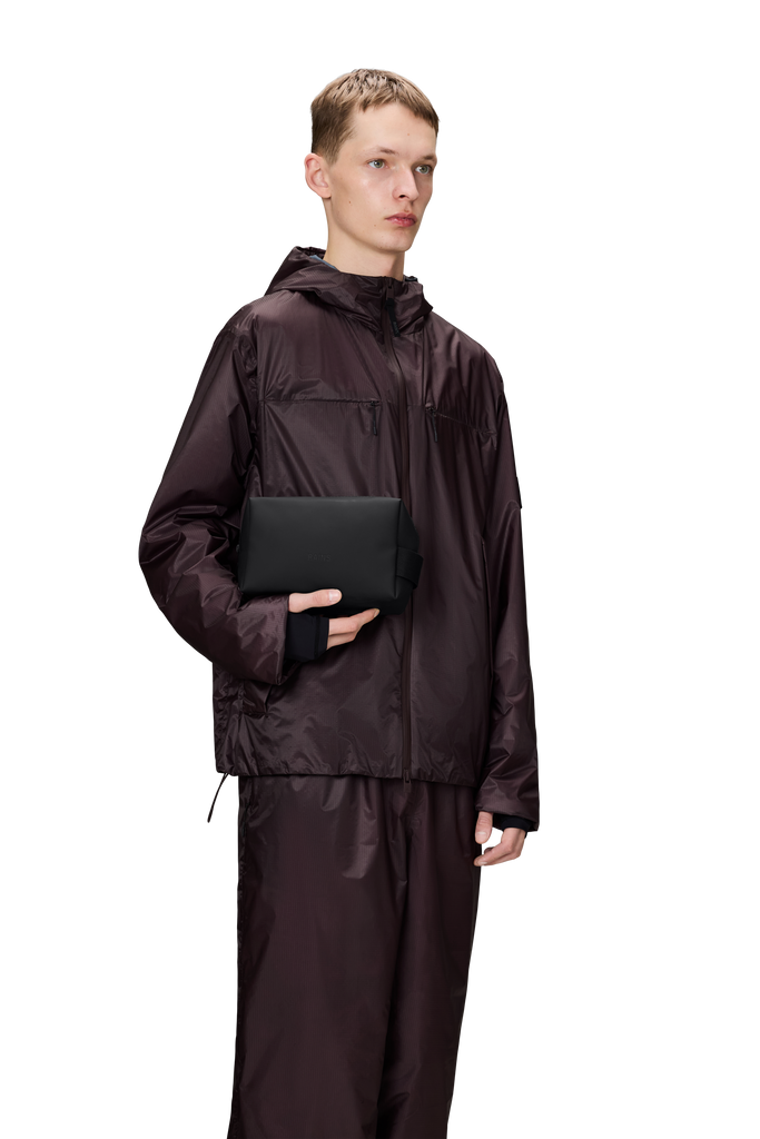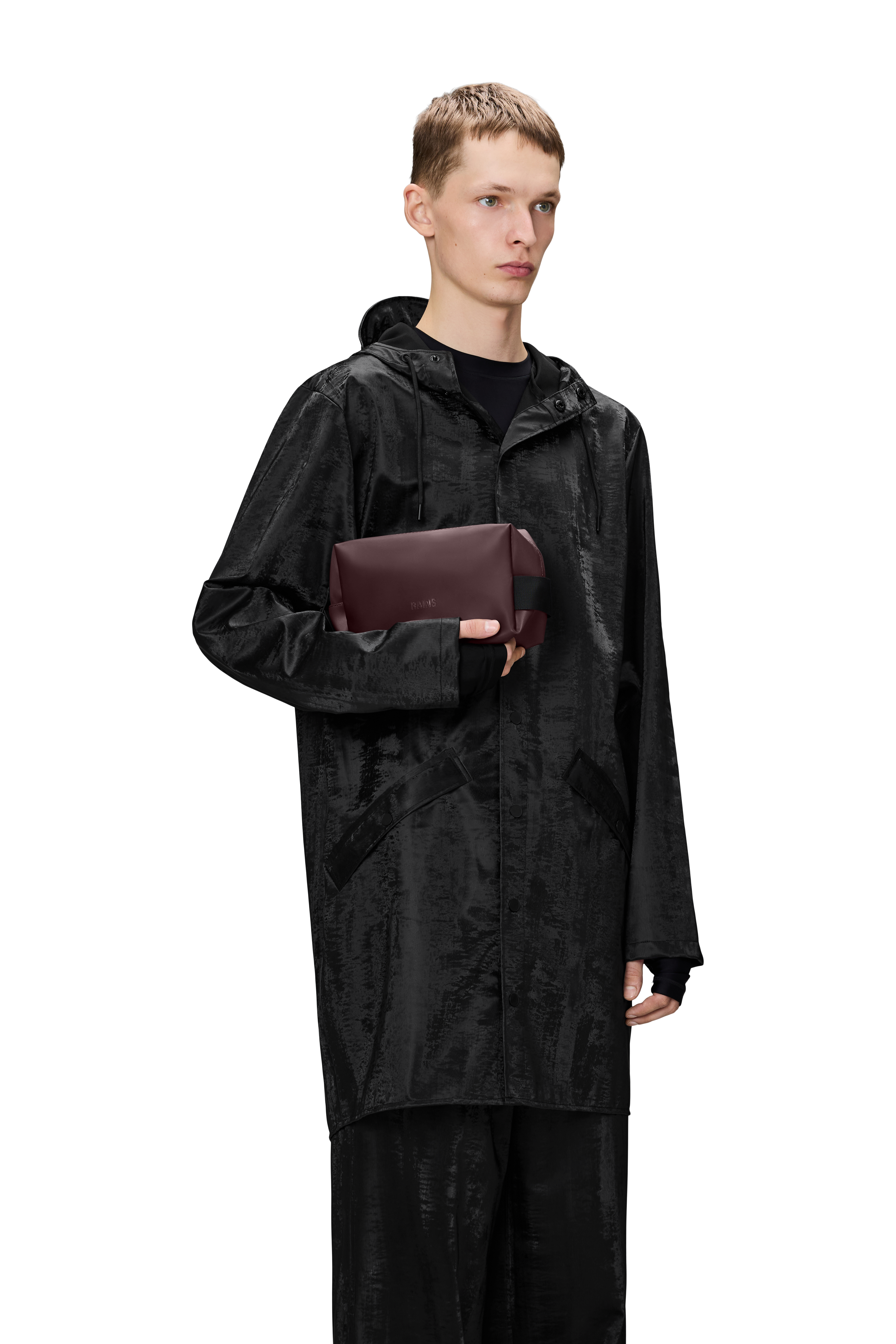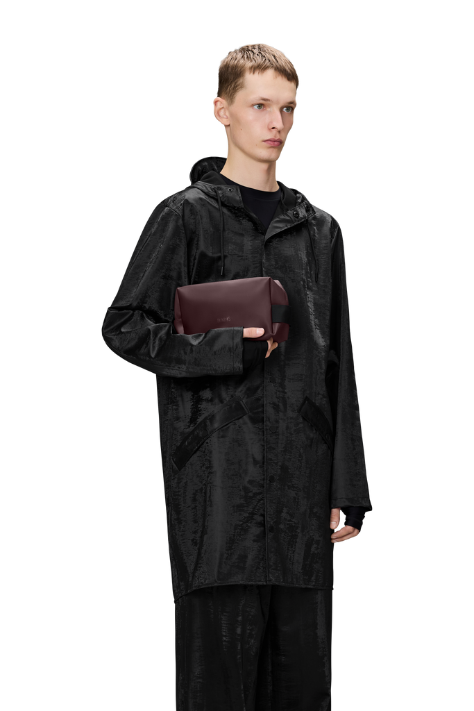 Wash Bag Small is cut in Rains’ signature waterproof PU fabric, engineered for carrying strength, durability, and a smooth feel.