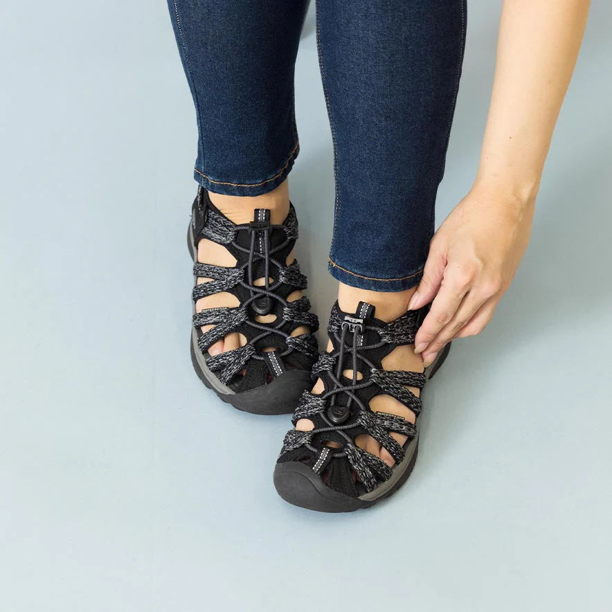Elastic cording gives this lightweight performance sandal a secure fit, easy to adjust in or out of the water. The washable upper makes cleaning easy, and the cushioned footbed provides comfort on the go.